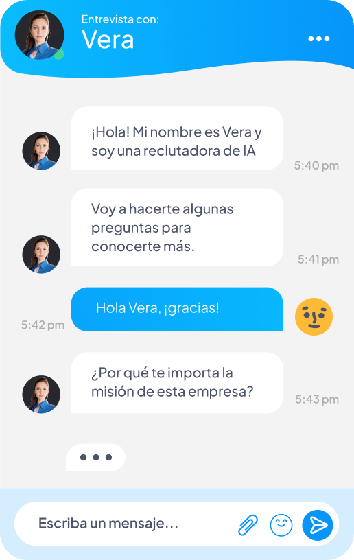 We engage candidates in a brief 10–15 minute conversation—via chat, audio, or video—to better understand their fit for the role.